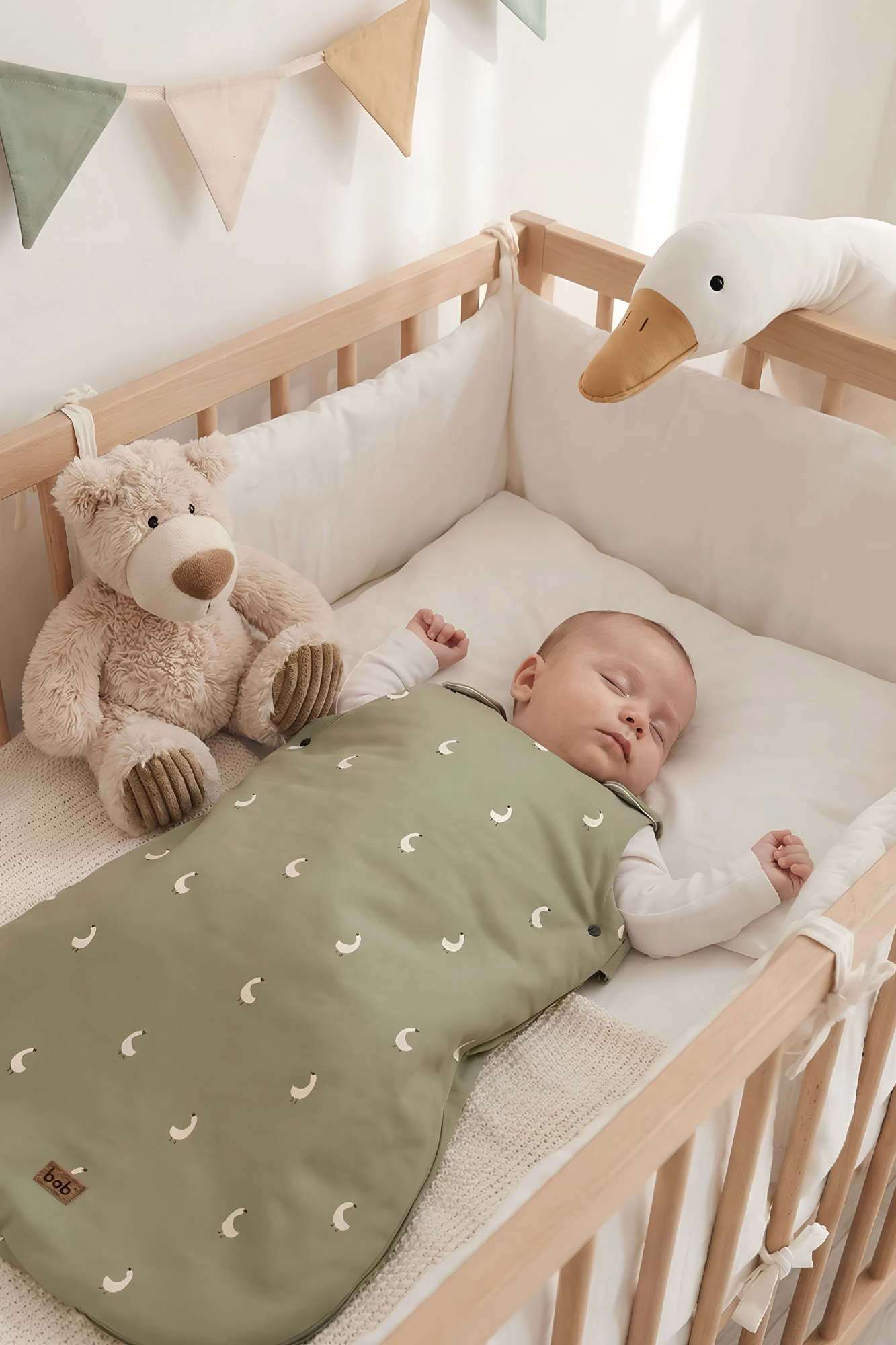 The sleeping bag helps to have a quiet, comfortable and warm night for your baby. It prevents taking off the blanket accidentally during the night. It has no sleeve, to avoid excessively high temperatures.