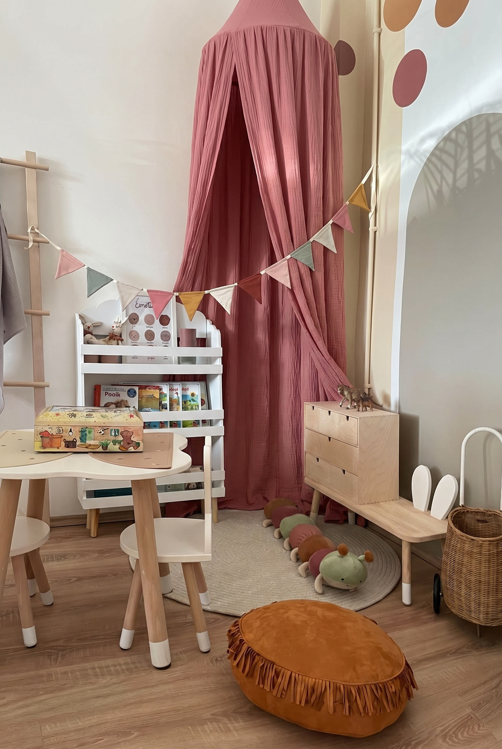 A gyönyörű esésű és pihe-puha 100% pamut karamell színű baldachin tökéletes választás kisfiú és kislányok szobájába is. A csodás pamut anyag akár a délutáni alvásoknál is segíti a sötétítést. A baldachin földig ér, impozáns és megkötővel szabályozható a tetején.